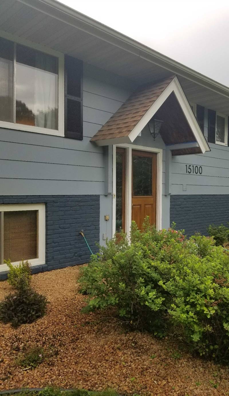 Poor guy. He was trying to paint the side of the house (he did a great job!)