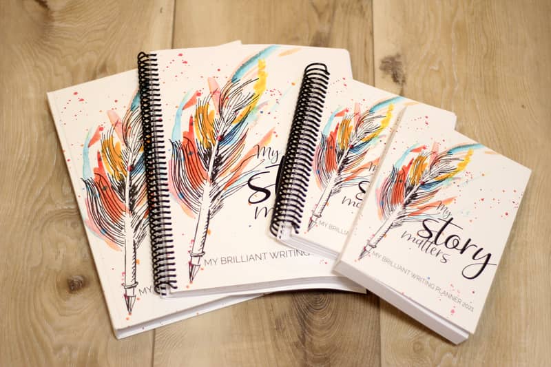 P.S Want to get serious about getting stuff done? The 2021 My Story Matters: My Brilliant Writing Planner is out! And it’s available in 4 brilliant sizes, for all the brilliant writers! And–we’ve SIMPLIFIED the planner this year (to the cheer of nearly everyone I’ve talked to. Including my daughter!). if you’ve struggled a little with the amount of planning pages in the past…I think you’ll love it. Simplified, focused and still brilliant. 🙂